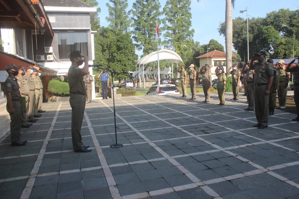 Kasatpol PP dalam amanatnya membacakan sambutan tertulis Menteri Dalam Negeri RI Muhammad Tito Karnavian. Ada beberapa hal yang memerlukan perhatian anggota Satpol PP dan Satlinmas yaitu kesatu, meningkatkan kesiapsiagaan dalam mendukung upaya pencegahan, pengendalian serta pendisiplinan dan penegakan hukum protokol kesehatan Covid-19, kedua meningkatkan pelaksanaan tugas, fungsi, dan kewenangan dalam mengawal urusan ketenteraman, ketertiban umum dan pelindungan masyarakat sebagai urusan pemerintahan wajib yang terkait dengan pelayanan dasar.
