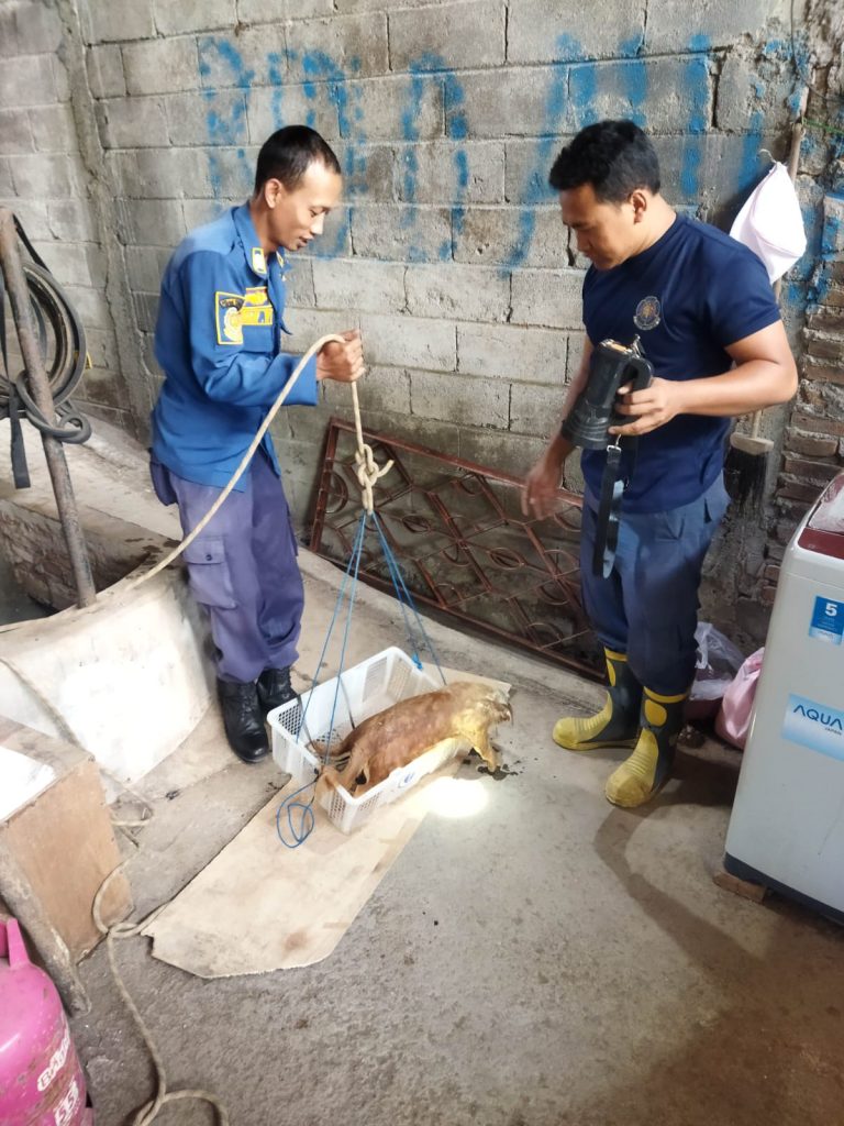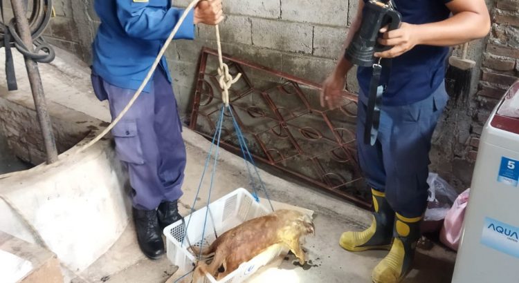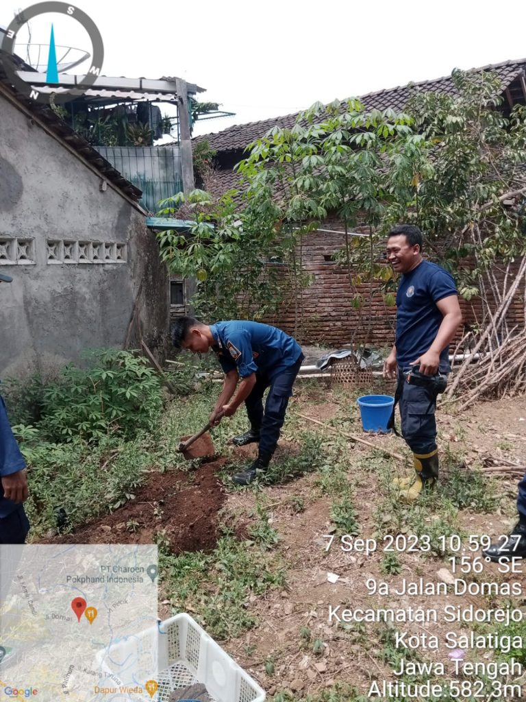 Salatiga – Kamis / 07 September 2023 personil Bidang Damkar pada Satpol PP Kota Salatiga melakukan evakuasi bangkai kucing dalam sumur yang diperkirakan mati sekitar 3 hari. Hal ini dilakukan atas laporan Ibu Yuni warga Domas RT. 10 RW. 8 Kelurahan Salatiga Kecamatan Sidorejo Kota Salatiga. Pelapor menghubungi Damkar Salatiga via nomor layanan whatsapp Damkar 0888 33 22 106. Dengan menggunakan keranjang dan tali, bangkai kucing berhasil dievakuasi dari dalam sumur, selanjutnya dikubur di pekarangan rumah oleh personil damkar.