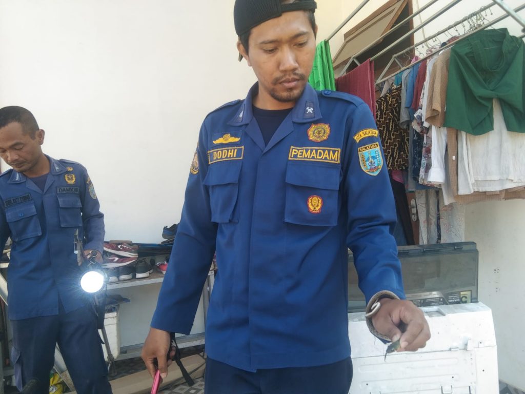 melakukan evakuasi ular atas laporan Ibu Maya beralamat di Jalan Cempaka Sari, Perumahan Cempaka Sari Blok E No.1 Kelurahan Kutowinangun Kidul Kecamatan Tingkir Kota Salatiga. Pelapor menghubungi Damkar via nomor 0888 33 22 106. Ular berhasil diamankan oleh petugas Damkar.