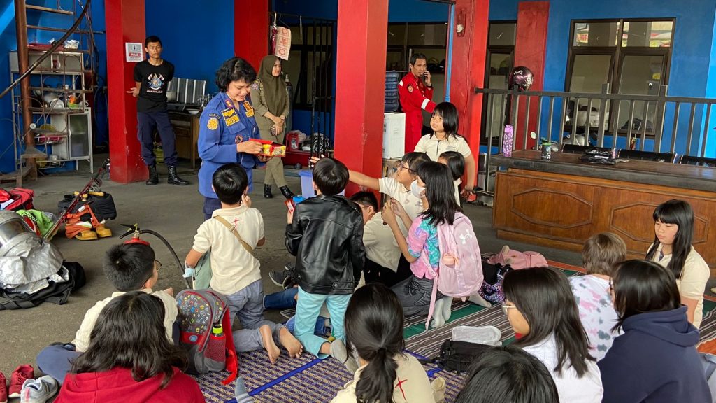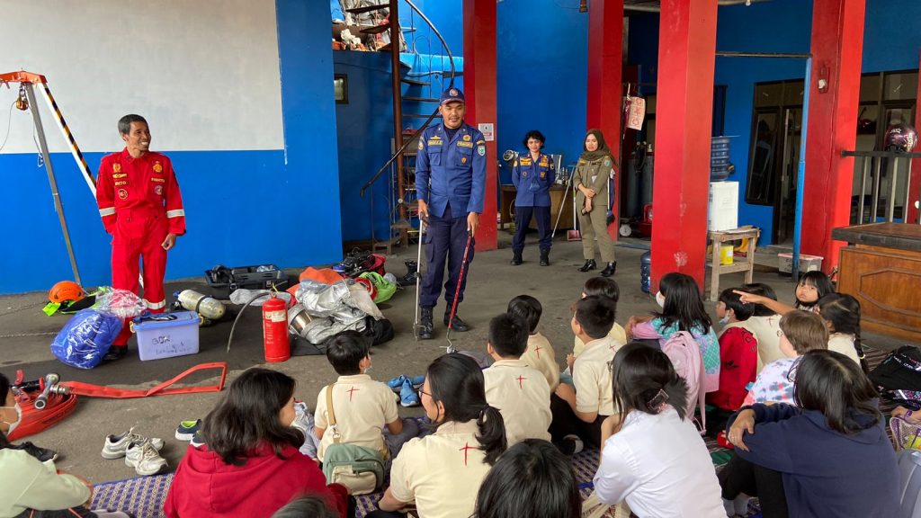 Salatiga – Personil Damkar Salatiga lakukan giat pengenalan profesi, peralatan pemadam kebakaran dan praktek penggunaan alat pemadam kebakaran dan non kebakaran pada Rabu, 31 Mei 2023. Bertempat di MAKO Pemadam Kebakaran jl. A. Yani No 14 Salatiga. Bersama Kasi Pencegahan dan Inspeksi BETTY WAHYU NILLA SARI, S.TP.,M.SI. didampingi beberapa personil Damkar Salatiga menerima peserta dari Destiny Institute yang ikut yaitu sejumlah 19 Peserta didik dan 7 guru pendamping berdasar Surat Permohonan ijin kunjungan. Hal yang dilakukan adalah pengenalan terhadap profesi Damkar adalah penanganan pemadam kebakaran dan non kebakaran. Non kebakaran yang sering dilakukan adalah evakuasi hewan seperti ular, kucing, sarang lebah dan lain-lain. Dalam kesempatan tersebut ditunjukkan pula baju pemadam kebakaran dan baju tahan api serta peralatan yang digunakan untuk proses pemadaman kebakaran dan non kebakaran. Akhir kegiatan anak-anak dan pendamping keliling ruas jalan dengan menaiki armada Damkar.