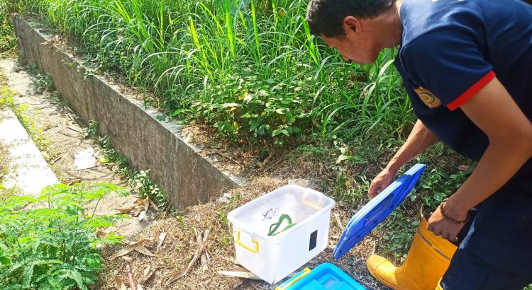 Salatiga – Minggu, 16 Juli 2023 Petugas Damkar Kota Salatiga melakukan evakuasi ular atas laporan Ibu Karina, Perum Salatiga Permai Nomor 176 Kota Salatiga dan atas laporan Bapak Agus Susanto, Sumopuro Kecamatan Sidorejo Kota Salatiga. Para pelapor menghubungi petugas via nomor layanan Damkar Kota Salatiga 08883322106. Petugas Damkar regu 2 langsung mendatangi tempat dan mengevakuasi ular di dalam hunian warga agar tidak membahayakan penghuni rumah dan orang sekitar. Petugas melepas ular ke tempat yang jauh dari pemukiman warga.
