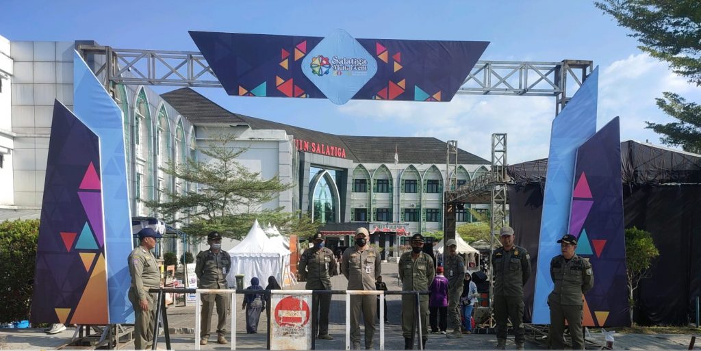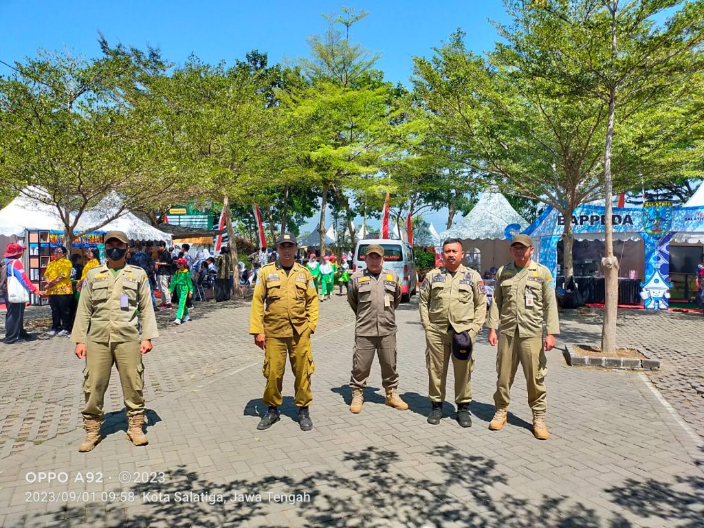 Salatiga – Satpol PP Kota Salatiga melakukan kegiatan pengamanan Pameran Produk Inovasi Jawa Tengah 2023 di Universitas Islam Negeri (UIN) Salatiga, Jumat (1/9/2023). Pameran yang dikolaborasikan dengan Salatiga Multievent 2023 itu, mengangkat tema “Riset dan Inovasi untuk Masa Depan yang Lebih Baik”. Kegiatan melibatkan perguruan tinggi, sekolah, organisasi perangkat daerah (OPD), pemkab/pemkot, serta swasta tersebut, dengan memperkenalkan berbagai produk inovasi kepada masyarakat.