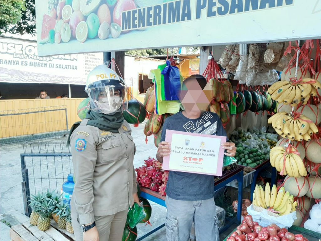 Tak henti-hentinya Satpol PP Kota Salatiga memberikan himbauan terkait pencegahan persebaran virus corona khususnya di wilayah Kota Salatiga. Ini dilakukan karena masih terdapat warga yang belum punya kesadaran dalam mentaati himbauan pemerintah dalam memakai masker.
