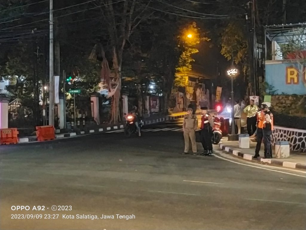Salatiga – Sabtu/ 9 September 2023, Personil Gabungan Satpol PP Kota Salatiga, Kodim 0714/ Salatiga dan Polres Salatiga melakukan patroli pengendalian pelanggaran ketertiban umum dan pengawasan wilayah Kota Salatiga. Dimulai pukul 19.00 WIB, kegiatan diawali dengan apel bersama di depan Kantor Satpol PP Kota Salatiga yang dipimpin oleh Kabid Ketertiban Umum , Ketentraman dan Pelindungan Masyarakat Sutarto, S.H. didampingi oleh Kasi Ketertiban Umum Operasional dan Pengendalian Satpol PP Kota Salatiga, Yoga Wizaksono,S.H., dengan memberikan arahan tentang rute patroli dan sasaran kegiatan.