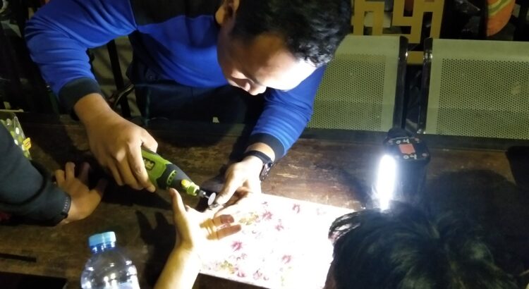 Salatiga – Damkar Salatiga lakukan pemotongan cincin yang tidak bisa dilepas di jari Saudara Prayitno, warga Pengkol Karanggedhe Kabupaten BoyolaliRabu, 5 Juni 2024 . Dengan menggunakan gerinda mini, cincin berhasil dikeluarkan.