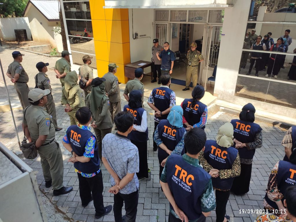 Salatiga – Tim Gabungan dari Dinas Sosial, Satpol PP dan Polres Salatiga melaksanakan giat Penertiban Pemerlu Pelayanan Kesehatan Sosial (PPKS) / Pengemis, Gelandangan dan Orang Terlantar (PGOT) di Wilayah Kota Salatiga pada Selasa, 19 September 2023. Kegiatan dimulai dengan apel bersama di Halaman Rumah Singgah Negara pada Dinas Sosial Kota Salatiga. Apel dipimpin oleh Basuki Tedjokusumo, S.H selaku Kabid Rehabilitasi Sosial pada Dinas Sosial Kota Salatiga, didampingi oleh Yoga Wizaksono, S,H. selaku Kasi Tibum Opsdal pada Satpol PP Kota Salatiga , dan personel Polsek Sidomukti.